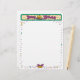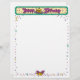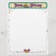 Det här brevhuvudet har en Grattis på födelsedagen-banderoll med en biet av tårta överst, en present vid grund och en färgstark konfekt gräns.
