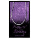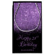 Modern presentpåse med lila glitter och födelsedagstext över svart. Den här mallen skulle vara i kostym i alla åldrar eftersom det är enkelt att anpassa den.