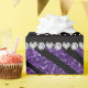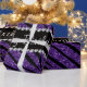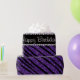 Modern lila glitter zebra ränder mönster (djurtryck) (inte äkta glitter) med svarta diamanter (inte riktiga diamanter) med hjärtan och prickar. Glitter zebra-presentidéer för flickor, tonåringar och kvinnor. Födelsedag papper med ord grattis på födelsedagen!