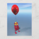 En humoristisk liten röd robot med en födelsedagsballong
