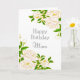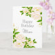 Detta vackra vykort har en illustration av vita pioner med gröna blad. Det finns en födelsedags hälsning på insidan som är perfekt för din mamma.