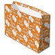 En stor presentväska med Grattis på födelsedagen och ballonger på orangens bakgrund. Anpassa bakgrunden till orangen, bland annat storlekare mönster.