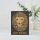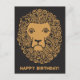 Ett coolt gammaldags lejonhuvud med lockig man från en teckning från början av 1900-talet visas här i guld på svart. Grattis på födelsedagen-meddelandet längst ner kan redigeras.
