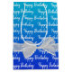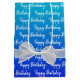 Grattis på födelsedagen-text och vit genomskinlig slinga på bakgrund med blå till akvatisk gradient.