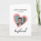 Önska din make en glad födelsedag med detta gratulationskort. Framsidan har en hjärtformad med orden kärlek inuti med "Grattis på födelsedagen min fantastiske make" skrivet i svart teckensnitt med hans foto centrerat. Du kan enkelt ladda upp din favoritbild och mallen är inställd för att du ska kunna redigera Grattis på födelsedagen make, pappa eller något annat namn du vill. Du kan också redigera meddelandena inuti kortet.