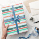 Behålla den här mångsidiga presentfigursättningen för praktiska födelsedagar fram till året. Med chic rand i uppfriskande mynta, persika, vit, orange och turkos, inkluderar det upprepade mönster hälsning "Grattis på födelsedagen" i manustypografi. Ljusstark, färglös och i party-andan gör inslagningen papper ett val av snyggt.