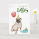 Grattis på födelsedagen Mops hund Vattenfärg Kort