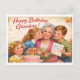 Roligt gammalt vykort. Barnbarn gratulerar sin mormor på födelsedagen.
