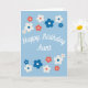 Ett sött blommigt-födelsedagskort för din fantastisk Moster! Det här har en enkel design med blå, vita och röda blommor runt, söt och elegant. Insidan av kortet lämnas tomt för att du ska kunna skapa ditt eget personliga meddelande.