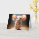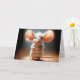 En söt fluffy-mus står på ett trästrå golv med en skyltskylt med texten "Grattis på födelsedagen"