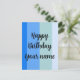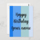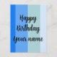 Snyggt blått randigt mönster med text: Grattis på födelsedagen och en namn mall. Anpassad för en marin stil.