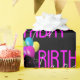Neon rosa contemporary Grattis på födelsedagen text på svart med party-ballonger. Bakgrunden till färg kan ändras.