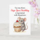 En förtjusande födelsedags kort för en niece med en illustration av en söt liten mus som bär en vaniljcupcake med strössel och en körsbär på toppen! All text på detta kort kan redigeras i personaliserings området.