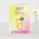 Anpassa det här födelsedagskortet för Grattis på födelsedagen önskemål. Det här vackra kortet har en bakgrund för rosa och gult, med "Bästa" skrivet överst i lila. Under är en mall för infogning av en namn. Det finns en ballong i uggla i mitten med "På födelsedagen" skriven med roligt. Insidan av kortet har ett underbart meddelande. Ställe din beställning idag!
