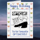 Optometriers tecknad. Optikerkonsument ge har en faktura som liknar ett testdiagram i öga. Anpassa med dina egna detaljer och meddelanden. Födelsedagskort för optometrist.