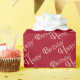 Vit Grattis på födelsedagen-text i roligt på röd bakgrund. Bakgrund färg kan redigeras. Du kan justera textens Vinkel.