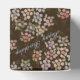 Snyggt liten papper blomningsruta i chokladbrun, modern text, grått blå grattis på födelsedagen kan vara personlig till vilket speciellt budskap som helst, inklusive företagshändelser, bröllop eller födelsedagsfirande, eller text och banderoll kan tas bort. En söt liten designergäst med papper förmånslåda. Den bruna bakgrunden kan växlas till ditt eget färg-val