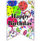 Festive picklleball födelsedagsfest som buntar flaggor för en födelsedagsfest med pickleball-spelare med färgfulla konetti- och pickleball-ballonger på vit bakgrund. Blå, röda, ljusa gröntar, gult, shock rosa och lavandeballonger tillverkade av betleball bollar. Födelsedagsfest flaggor, som är färglös med pickleball-temat, för din pickleball-älskande mamma, pappa, morbror, moster, bror, syster, syster, granne, farfar, mormor, make, hustru, vän eller arbetskollega som inte slutar prata om pickleball. Grattis på födelsedagen till din favoritväljare.