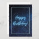 Blått Galaxy-kort från grattis på födelsedagen med ett meddelande bakom