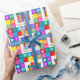Färgfull födelsedagsillustration med symboler i fyrkanter