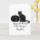 Purringkortet har en svart katt sitta bredvid en svart pumpa. Cute cat med rosa collar illustration för den giftiga katten dam. Underbar födelsedagskalender för kvinnor som äger svarta katter. Den här fallillustrationen är perfekt för oktober, september eller Fallfödelsedagar.
