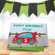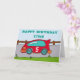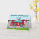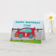 Ett födelsedagsgratulationskort för racingbil. Ett anpassningsbart och personligt födelsedagskort för barn, speciellt för en pojke. Detta kort har en röd tävlingsbil med ett åldersnummer och kör på en väg.