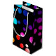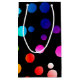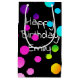 Grattis på födelsedagen text med personlig namn och neon polka dots mot svart bakgrund. Bakgrund färg kan redigeras. Namn kan redigeras eller tas bort.