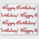 Grattis på födelsedagen! Avslappnad rött skript i en halvfylld mönsterruta på en vit bakgrund, eller anpassa ditt eget.