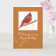 Ett hälsningskort i grattis på födelsedagen som dekoreras med en röd kardinalfågel som dras i svart bläck med vattenfärg på en mjuk kanel med brun bakgrund. Bra kort att skicka till någon speciell på födelsedagen!
