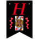 Den här Grattis på födelsedagen-buntbanderollen är svart med ett ornat hjärtdrottningkort med rader med röda hjärtan på varje sida av kortet. Anpassa födelseår med mallarna.
