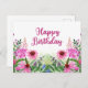 Grattis på födelsedagen Rosa akvarell vilda blommo Vykort