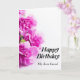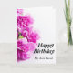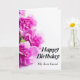 Grattis på födelsedagen Card med fuchsia Rosa mjuka blad blommor på vit bakgrund och ett lustigt citat för dem som oroar sig för åldrandet.