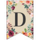 grattis på födelsedagen-banderollen har blommigt vattenfärgsformgivning med ro, dahlier, peonblommor och grönt i en fantastisk palett med burgudtt, gyllene gult, persikofärgad orange, rosa och nyanser av grönt med beige och rosa bakgrund färg.