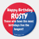 Grattis på födelsedagen RUSTY röd/blå magnet från FindAnyName.com
