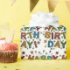 En färgstark och fräschande Papper med Grattis på födelsedagen-skript som är mönstrad