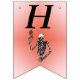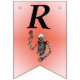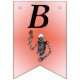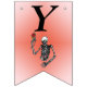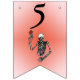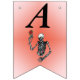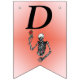 Denna flagga formade buntbanderoll i Grattis på födelsedagen är röd i mitten som bleknar till rosa med ett skelett som håller ett enda röd ros på ett stam över huvudet. Anpassa Grattis på födelsedagen text- och födelseår med mallarna.