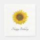 Gult solrosolnapkin Grattis på födelsedagen på vit bakgrund. Svart typografisk text för elegant kan anpassas med din egen text för ditt eget meddelande. Underbar för att lägga till en blommigt i födelsedagsfesten!