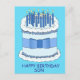 En stor tecknad födelsedagskalas med tända ljus på och ord "Grattis på födelsedagen Son" sätts mot en ljusblå bakgrund.