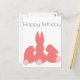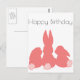NewParkLane - Vykort, med tre söta kaniner i korallrosa, och 'Grattis på födelsedagen' hälsning i modern, elegant typografi.