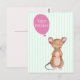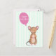 NyParkLane - vykort, med en söt skogsmus i akvarell, med en rosa ballong, med citat: 'Grattis på födelsedagen!', mot en mintgrön randig bakgrund.