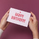 NewParkLane - Söt vykort, med ett lyckligt födelsedagsönskan i en söt röd typografi med små hjärtan, mot en rosa bakgrund.