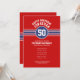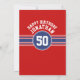 Röd, vit och blå - Den här sportiska och tävla rand-designen är perfekt för alla idrottsmän som spelar hockey, fotboll, fotboll eller baseboll. Du byter nummer till ditt lyckonummer eller till och med en speciell ålder för en födelsedagsfirande. En tålig och maskulin design med ett område för vilket årsdag som helst - 5, 50, 70 eller annat!
