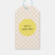 Sömmande gult: Grattis på födelsedagen blöjor med vit polka dots och gulvit bakgrund för ett sött solskint temaparty för barn, eller anpassade för en babydusch, med personlig handskrift stil brev med namn och ett meddelande.