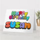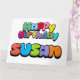 Färgfull "Grattis på födelsedagen Susan" bubblegum stil text.