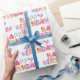 Grattis på födelsedagen med söta efterrätter och färgade sprinkler på vitt