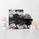 Grattis på födelsedagen Text och blommor på svart Presentpapper