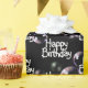 Grattis på födelsedagen på svart med ökenbubblor på födelsedagen. Den svarta bakgrunden kan ändras.