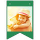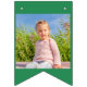 Grattis på födelsedagen-banderoll med 8 av dina favoritfoton, personlig grattis på födelsedagen till dig sång och anpassad flaggor med din ålder. Utformningen har en fet färg-palett med bränd orange och grönt.