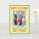 Rolig golf-tema tecknad film där en brevbärare har en uppsättning golfklubbor i sin brevpåse. Perfekt rolig födelsedagskort för en golfare eller golfspelare.