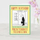 Ett födelsedagskort med en tecknad av en man som väntar på en hiss eller hiss. Knapparna har Upp, Ned och Lucky Dip som alternativ. Perfekt kort för alla underhållstekniker.